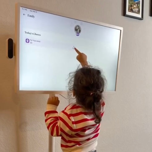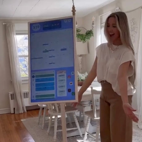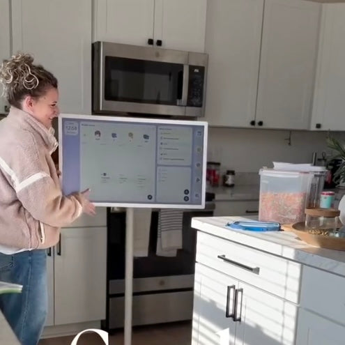 The 32-inch model is our most popular choice, offering the best visibility in kitchens and shared spaces; if you need mobility, the 32-inch Calendar+ Go provides the same experience with a rechargeable rolling stand. The 24-inch version is a good fit for medium-size areas and can also be wall-mounted for a cleaner setup. The 15.6-inch model is best for small counters or desks, making it a compact option for tighter spaces.